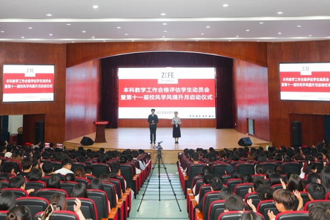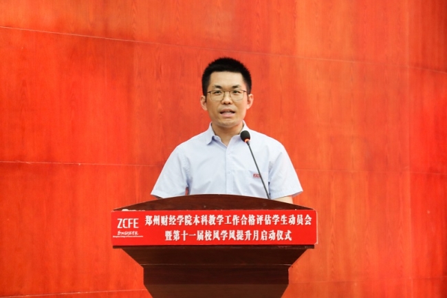 学生处处长李坤宣读了《郑州财经学院第十一届校风学风提升月活动方案》,希望同学们把活动方案当作一份行动指南,自觉规范自身行为,以饱满的精神风貌共同营造良好的校风学风。