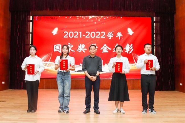会上,校长王能民为获得2021-2022学年“国家奖学金”和“国家励志奖学金”的优秀学子颁发荣誉证书,对他们表示热烈祝贺。