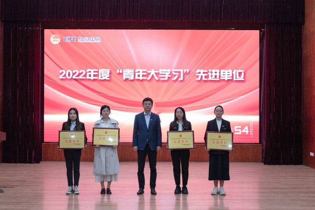 校党委副书记董学力为2022年度“青年大学习”先进单位颁奖
