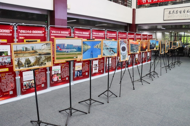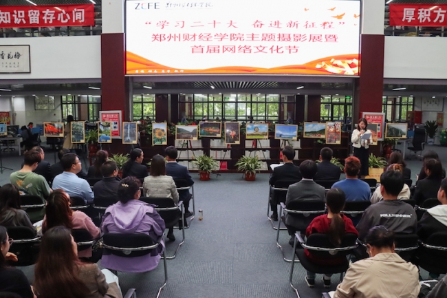 为深入学习宣传贯彻习近平新时代中国特色社会主义思想和党的二十大精神,进一步激发广大师生爱党、爱国、爱社会主义的真挚情感,5月4日下午,由校党委宣传部、校工会联合举办的“学习二十大 奋进新征程”郑州财经学院主题摄影展暨首届网络文化节在图书馆二楼大厅开幕。相关校领导,各二级学院师生代表,摄影比赛获奖者及大学生记者团代表参加开幕式。开幕式由党委宣传部部长杨建伟主持。
