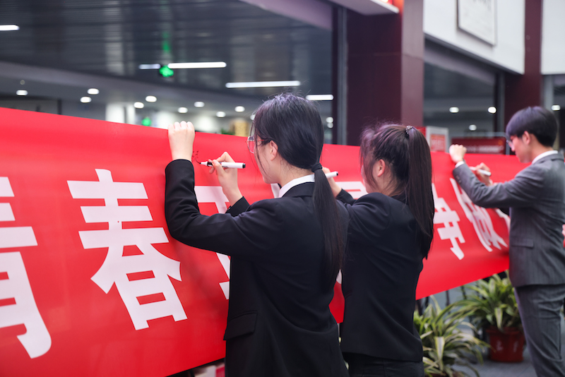 大学生记者团代表杨媚宣读《传播青春正能量 争做郑财好网民》倡议书。随后,校领导、师生代表在“传播青春正能量 争做郑财好网民”条幅上签名,并庄严承诺:文明办网、文明用网、文明上网、文明兴网,打造清朗的网络空间,建设美好精神家园。
