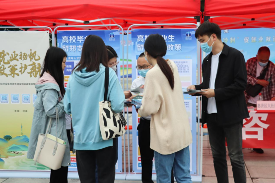 郑州市惠济区委人才工作领导小组办公室、惠济区人力资源和社会保障局前来助力,与我校共设就业咨询台,宣传国家及省市毕业生就业促进政策,详细解答毕业生就业疑问。