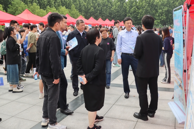 校监事会主席李庆阳、常务副校长张胜利、党委副书记董学力深入双选会现场指导工作,并与用人单位及广大毕业生亲切交流,询问企业的岗位需求、用人标准以及对学校人才培养和就业服务的意见和建议,了解毕业生的求职意向、就业预期等情况,鼓励毕业生找准职业定位,积极求职。