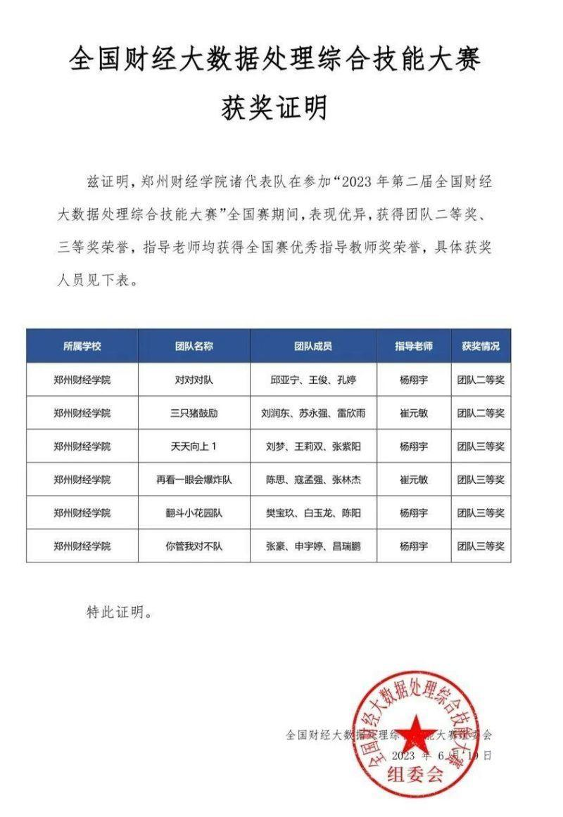 财经与大数据应用技术深度融合是当前数字经济时代的热点,为响应国家数据经济发展规划,促进学生全面数字素养与技能提升,我校会计学院组织本科学生参加由中国商业会计学会主办的2023年第二届全国财经大数据处理综合技能大赛。经前期报名和专业考查,会计学院24名学生组成8支队伍代表学校参赛,经过激烈的比拼,我校共有6支队伍脱颖而出,获得2个团队二等奖,4个团队三等奖的优异成绩。