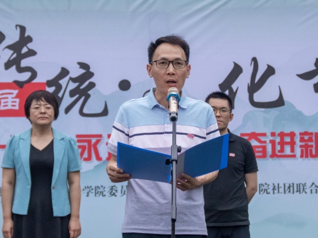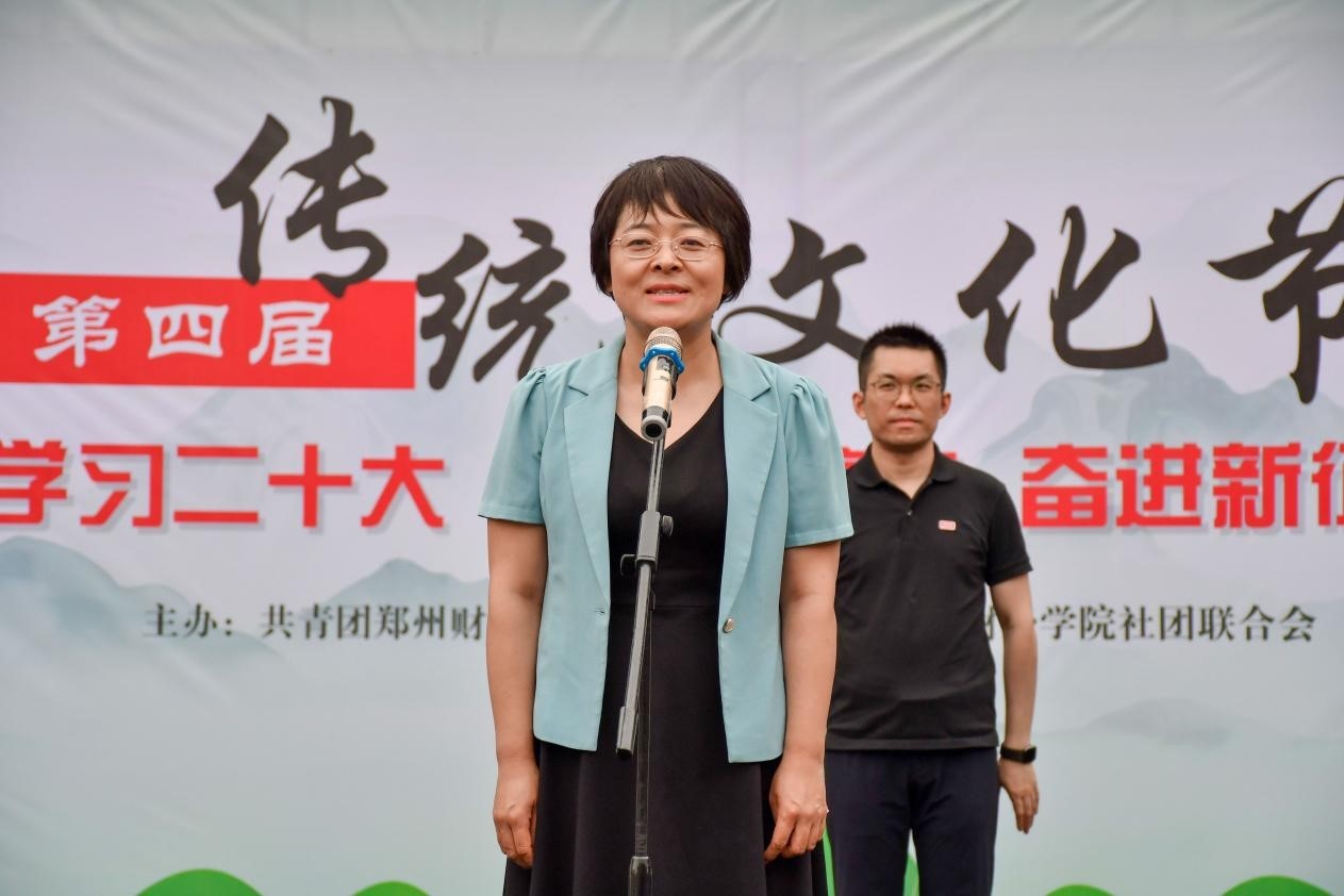 副校长陈静宣布郑州财经学院第四届传统文化节正式开幕。