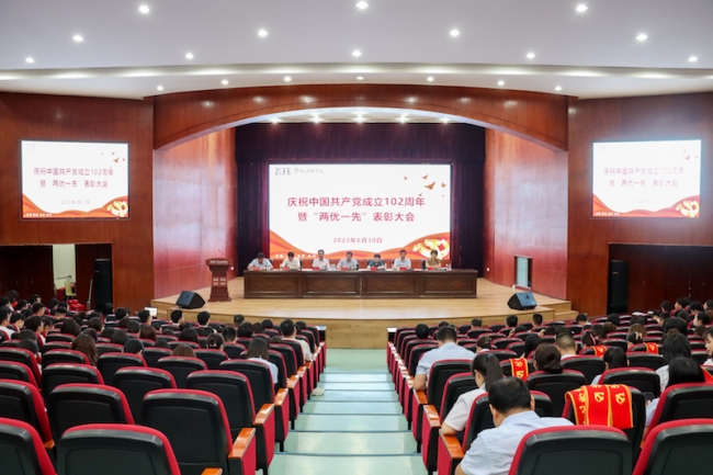 在中国共产党成立102周年之际,为进一步弘扬正气、树立标杆,充分发挥先进典型的示范引领作用,激励学校各级党组织和广大党员坚定信念、对党忠诚、履职尽责、奋发有为,6月30日下午,我校在图书馆学术报告厅召开庆祝中国共产党成立102周年暨“两优一先”表彰大会。校长王能民等校领导,党群职能部门负责人,党总支书记、委员,专职组织员,党支部书记,受表彰单位、个人,2023年新发展的预备党员代表参加大会。大会由党委副书记董学力主持。