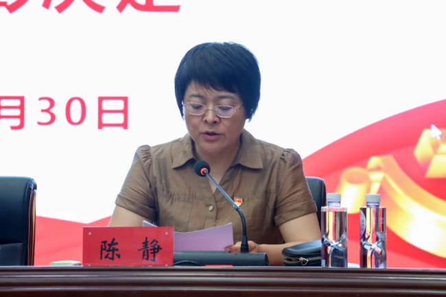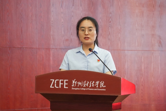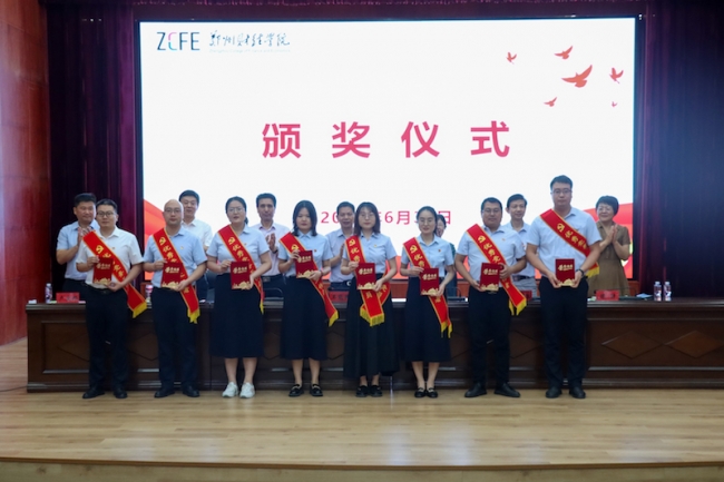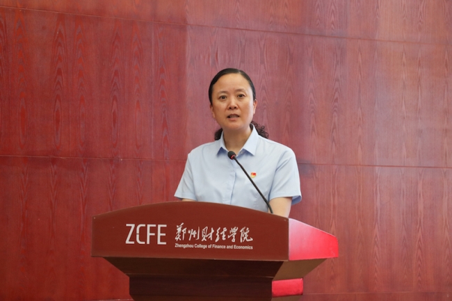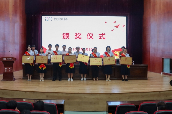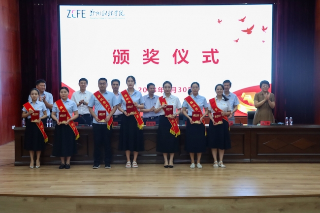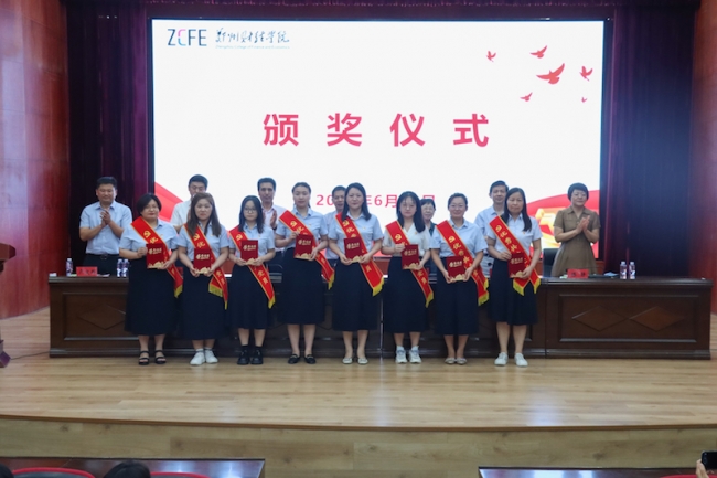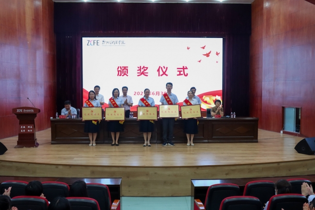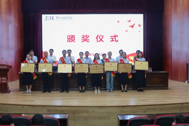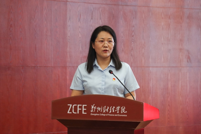 党委委员、副校长陈静同志宣读《中共郑州财经学院委员会关于表彰2022-2023学年优秀共产党员、优秀党务工作者和先进基层党组织的决定》。她希望受到表彰的先进集体和个人珍惜荣誉,再接再厉,继续发挥先锋模范作用,努力工作,为学校发展做出更大贡献。