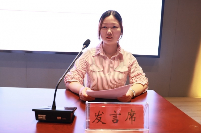 信息工程学院辅导员陈茜发言,她代表全体辅导员表态,将以此次培训为契机,加强学习、更新观念、准确定位、提高素质,在今后的工作中立足岗位实际,不断探索创新,为培养社会主义合格建设者和可靠接班人贡献力量。