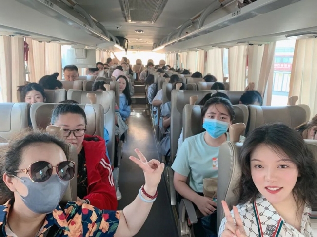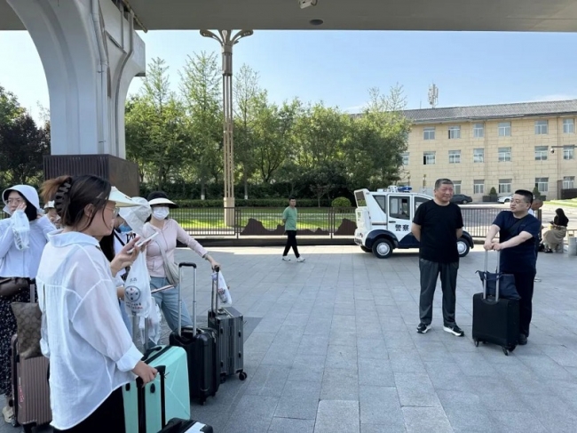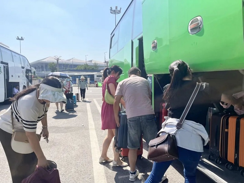 研修班学员集合完毕之后,工作人员耐心地为大家讲解了乘车的相关安排,带领学员们前往大巴车乘车处。