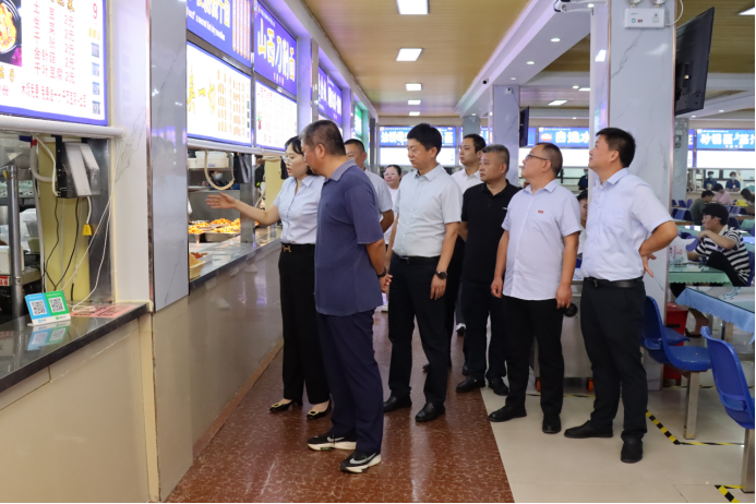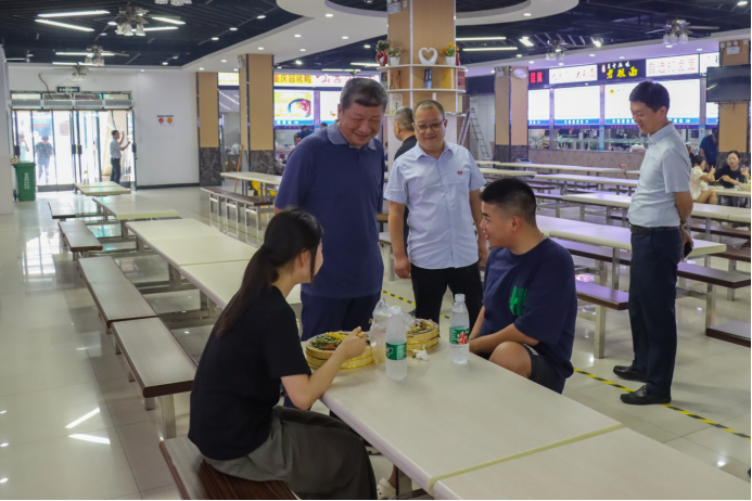 校领导一行深入学校餐厅,对清洁卫生、食品安全制度落实等情况进行详细检查,并与返校学生亲切交谈,了解学生们对学校食堂饭菜种类、价格、分量、口味、服务等方面的满意程度。