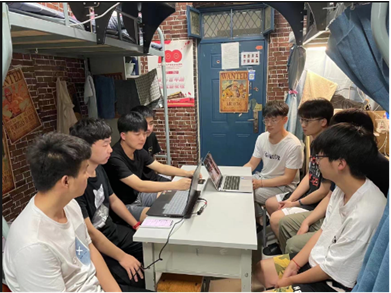 学生在宿舍观看直播