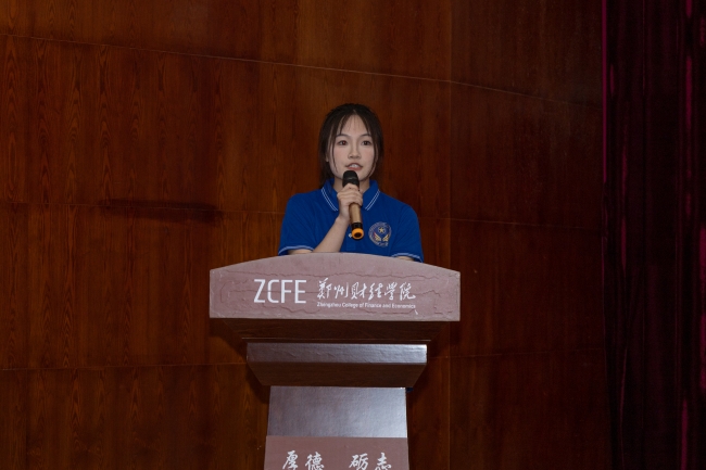 秋实班第五期新学员代表王悦结合自身学习实践经历,讲述了自己如何通过努力,成为了校青马班的一员,号召学员们珍惜此次学习机会,“青”火相传,“马”不停蹄,力争成长为有担当、敢奉献的新时代青年。