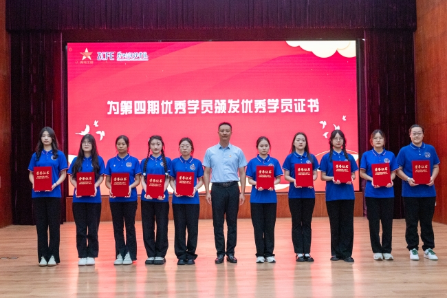校团委书记周二涛为第四期学员代表颁发结业证书