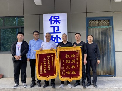 11月1日上午,我校保卫处收到“助人为乐真善美 无私奉献树新风”和“爱岗敬业 校园卫士”两面锦旗,感谢保卫处工作人员王菲、郑广力、孟恩凌晨3点多为餐厅员工找回走失的孩子。