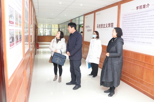 调研工作结束后,调研组专家来到马克思主义学院参观学院文化墙。
