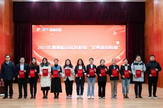 与会领导依次为2023年暑期社会实践“先进个人”、“优秀团队调研报告”、校级“优秀指导教师”、校级“优秀团队”、省级、国家级“优秀指导教师”、省级“优秀团队”、“优秀特色品牌项目”、国家级“优秀团队”、“优秀组织单位”颁奖。