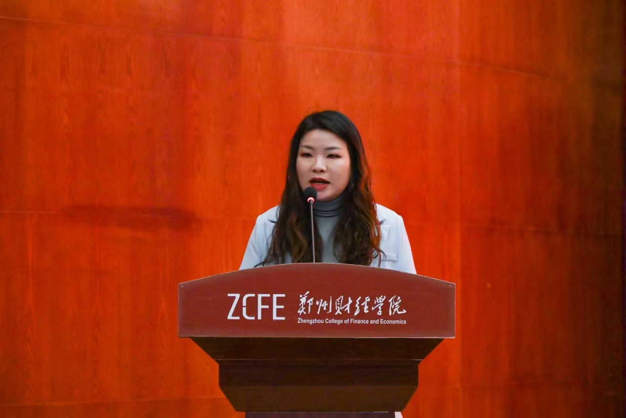 会计学院“小绿伞”防溺水暑期社会实践团代表张胜楠、教育学院“蒲公英”暑期支教实践团代表李豫桂、外国语学院“郑小语”二十大精神双语宣讲实践团代表李苗慧进行汇报展示。她们分别围绕安全宣讲、服务支教、乡村振兴三个方面展开汇报,呼吁广大学生以青年特有的朝气和底气,在实践中诠释青年担当、践行青春使命。