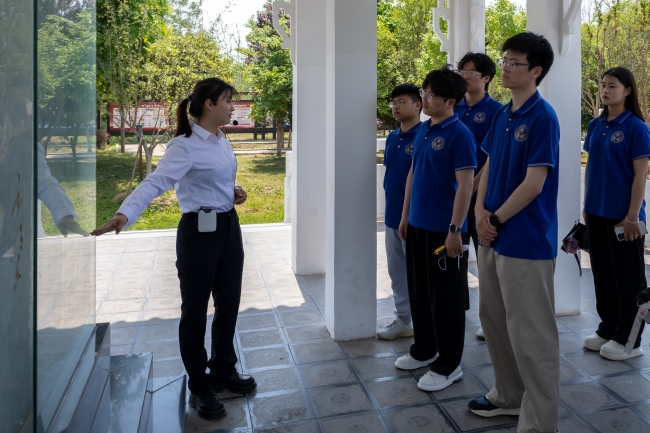 最后,在东坝头黄河纪念亭,讲解员带领大家了解东坝头的历史故事,使我校学子深刻体悟焦裕禄同志为治理黄河付出的心血与汗水。