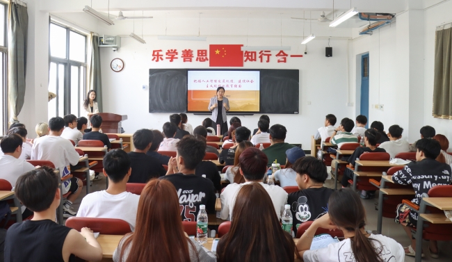 为深入学习贯彻习近平总书记关于加强和改进高校思想政治工作的重要论述,落实《关于加强和改进新形势下高校思想政治工作的意见》精神,响应习近平总书记近期对学校思政课建设作出重要指示。5月31日上午,校监事会副主席王艳珍走进课堂,以“把握人工智能发展机遇,建设社会主义现代化教育强国”为主题,为我校2023级计算机应用与技术2班的同学讲授了一堂精彩的思政课。