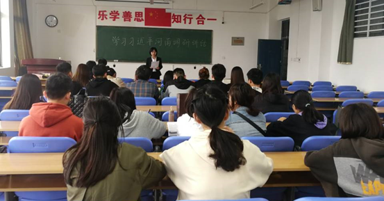 电子商务学院电子商务学生党支部组织学生党员在J7-607开展此次专题学习活动。李慧老师向大家解读并阐述了习近平总书记考察调研河南的里程碑意义、精髓要义以及实践要求,她希望全体学生党员要在深学细悟中抓落实,紧密结合“不忘初心、牢记使命”的主题教育精神。随后,学生党员代表尚振威同学向大家分享了他在学习习近平总书记考察调研河南时重要讲话精神的心得。